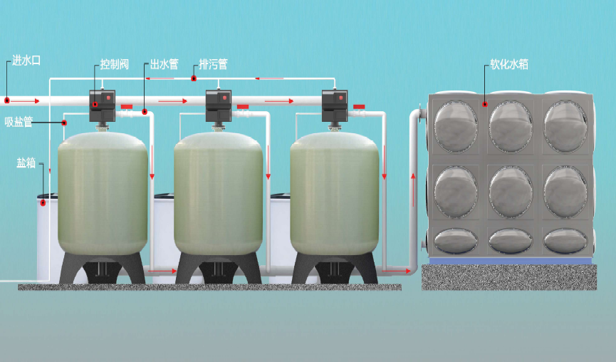 • 產品描述: 含有硬度的原水通過離子交換樹脂,水中的鈣鎂離子被樹脂吸附,同時釋放出鈉離子,可使水中的鈣鎂離子與樹脂的鈉離子發生置換反應,經軟化處理的硬水鎂鹽和鈣鹽的含量下降到1.0-50毫克/升的軟化水。當樹脂吸附鈣、鎂離子達到一定的飽和度后,出水的硬度超標時,這時候軟化水會按照預定的程序進行失效樹脂的再生工作,利用較高濃度的氯化鈉溶液(鹽水)通過樹脂,使失效的樹脂重新恢復至鈉型樹脂。